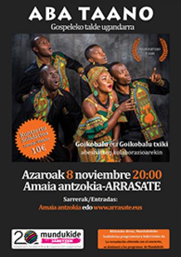 • En el 20 aniversario de Mundukide, este organiza un concierto solidario de la mano del grupo de góspel ugandés Aba Taano.Este grupo africano galardonado con 6 premios internacionales tendrá asimismo la colaboración de Goikobalu y Goikobalu txiki.