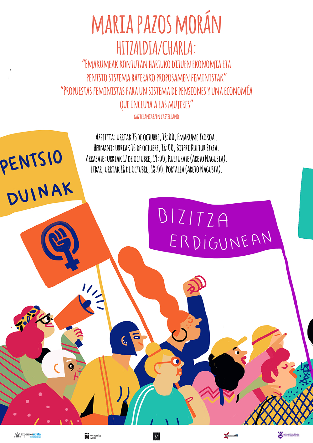 La red de escuelas de empoderamiento de Gipuzkoa hemos organizado un ciclo de charlas con Maria Pazos en : Hernani, Azpeitia, Arrasate y Eibar. En las charlas Maria Pazos nos presentará su libro Contra el patriarcado . Economia feminista para una sociedad justa y sostenible .