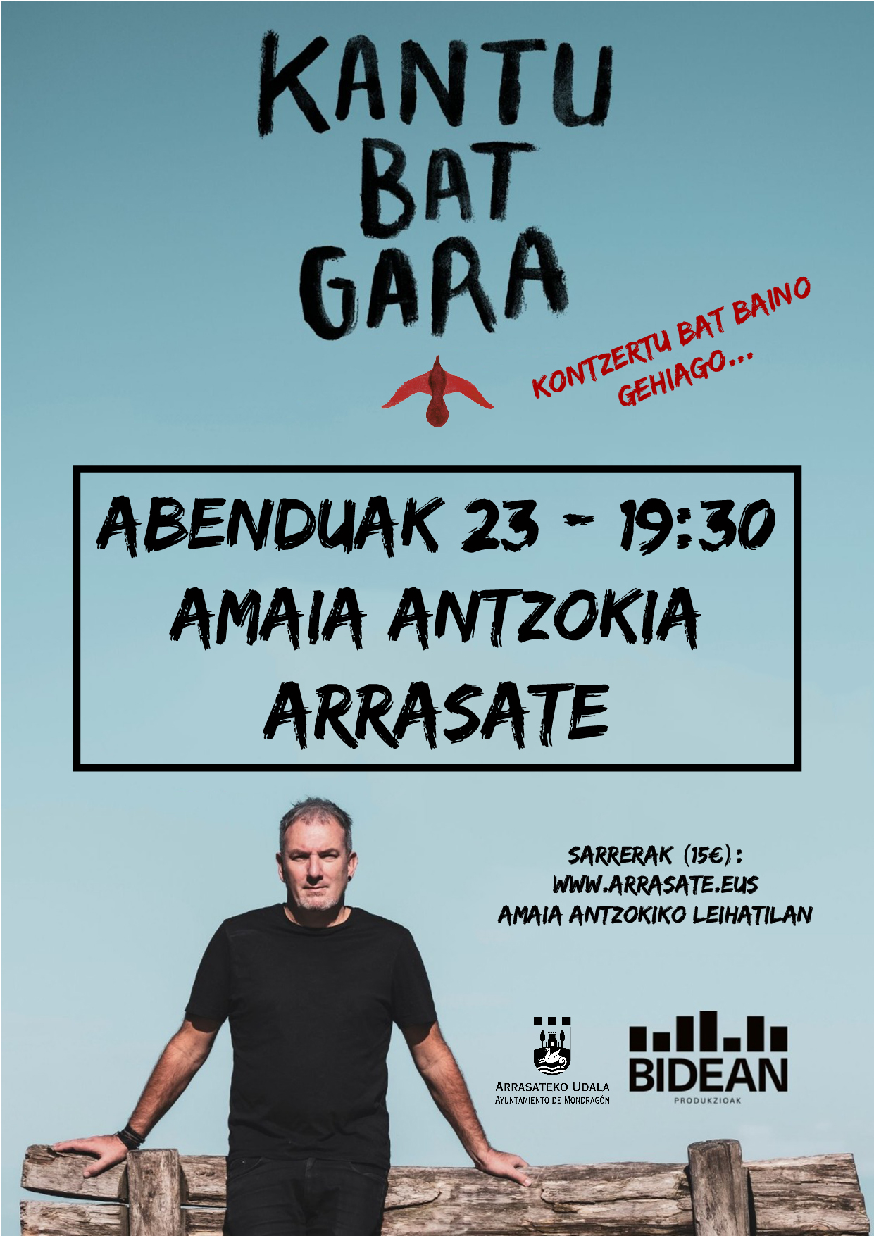 • Jon Maia. Kantu batgara   Kantu bat gara emanaldiakez dira kontzertu soilak izaten: Jonek euskal kulturaren, historiaren etaidentitatearen ikuspegi partikular bat zabaltzen du bere kantutegiaren bidez,hitzaren emozioa kantu bihurtuz eta publikoaren konplizitatea bilatuz beti.Urteotan hainbat talde eta abeslarien letragilea da Jon Maia eta kantu horien bidezbidaia bat proposatzen dute bere emanaldiek. Besteak beste Negu Gorriak, BenitoLertxundi, Gari, Anari, Gozategi, Mikel Urdangarin, Ken zazpi edo Pirritx etaPorrotxentzat idatzitako kantuek osatzen dute bere zuzenekoetako kantutegia.  2022ko abenduaren 23an, ostirala (Amaia antzokia) 19:30etan(15 €)