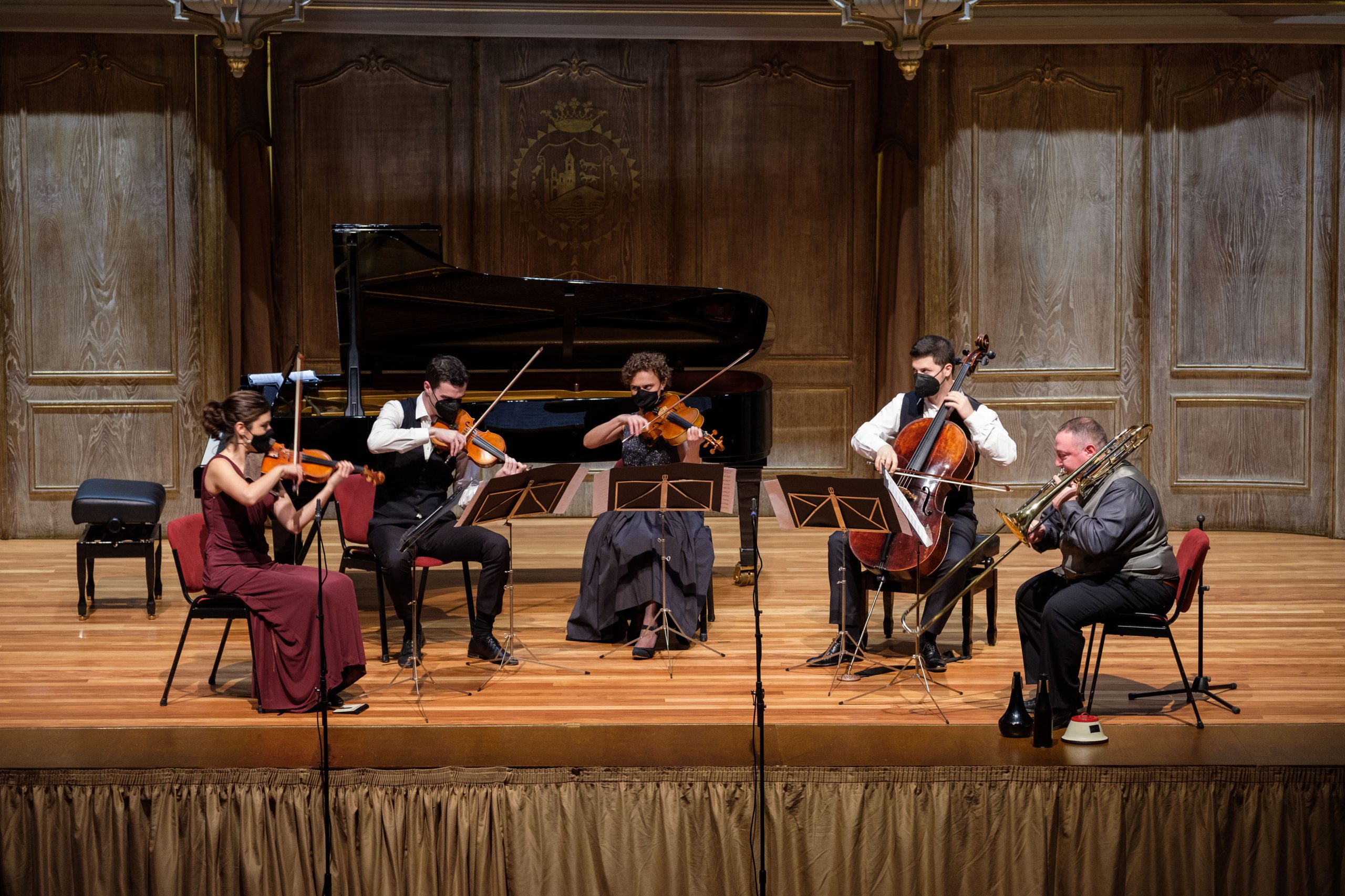 • Maiatzak 7, 19:30 Kulturateko Areto nagusian:Ensemble Soinuaren Bidaia Alberto Urretxo tronbonista buru duela, ESBEnsemble Soinuaren Bidaia 2015ean sortutako ganbera musika euskal talde bat da,profesional bikainek osatua. Taldekideen arteko konplizitateak eta beraienproiektuen dinamismoak aukera ematen diote ESBri soinua sentitzeko eta transmititzekobeste modu bat sortzeko, gogo biziz eta kontraste erakargarriz betea. EnsembleSoinuaren Bidaiak hainbat programa eta formatu ditu, eta hauek dira horienprotagonista: musika sortu berria eta Musikaren, Arteen eta horien hedapenarenikuspegi integratzailea. Ensemblearen jardueran aipatzekoak dira aipatutakokontzertuak, hainbat diziplina artistikorekin fusionatutako kontzertuak,jarduera didaktikoa eta beraien CDen ekoizpena eta banaketa. Ensembleren jardueraetengabea izan da bere sorreratik, bere proiektuak hainbat jaialdi eta herritanaurkeztuz. 2015ean bere lehen CDa aurkeztu zuen, Soinuaren Bidaia, SopelakoKurtzio aretoan. Hiru urte geroago, Soinuaren Bidaia II izeneko bigarren CD batestreinatu zen Bilboko Campos Antzokian. Bi lanek musika ulertzeko modu battransmititzen dute, emozioan oinarritua eta esperientzia bat bizitzeko gonbidapenireki eta etengabean. ESBren ibilbidean nabarmentzekoak dira Bilboko EuskaldunaJauregian Bilbao Orkestra sinfonikoaren Ganbera zikloaren barruan eskainitako kontzertuak,Hamabostaldi ibiltaria zikloko kontzertuak Donostiako Hamabostaldi Musikalean,Madrilgo Erkidegoko "Klasikoak udan" kontzertuak, eta BidebarrietakoUdal Liburutegian, Bilbon, eta Gasteiz, Bermeo, Lekeitio eta Bakiokojaialdietan eskainitako erabateko estreinaldiak. 2020. urtean, ESBk bere lehenkontzertua eman zuen Bilboko Elkarte Filarmonikoaren aretoan. Hilabete batzukgeroago, Confluencias Topaketak izeneko ensemblearen hirugarren landiskografikoa grabatzekogunea izan zenFilarmonika, eta 2021eko abenduaren 1ean aurkeztuko da areto ospetsuan. ConfluenciasTopaketak, ESBri esker, Elkarte Filarmoniko ospetsuaren historiako lehen euskalgrabazio fonografikoa da. ESBk harizko eta tronboizko laukotea sortu zuenprograma landu eta deigarri bat aurkezteko. Soinuaren Bidaiarentzat J.C.Pérez,H.Extremiana, J.Martinez Campos eta R.Mollá musikagileek idatzitako musikarekinegindako kontzertu komentatua, eta baita hari eta tronboirako idatzi dutenhainbat konpositore unibertsalen lanekin ere, Vincent Persicheti kasu. Programaosatzeko, ensembleko kideek beraiek moldaketak egin dituzte Mahler, Bartok,Piazzola, Monti, Debussy,Tartini edo Faurékonpositoreen musikaz. PROGRAMAY MINUTAJESESBQUINTET “De Mahler a Mahler”  Ouverture:“Soinuaren Bidaia”, X.Otaolea                                                   5’“Wennmein Schatz Hochzeit macht”, G. Mahler                                                    5’“Gingheut’ Morgen üver’s Feld”, G. Mahler                                                 4’"Gudari",R. Mollá                                                                                                      15’"Carptim", H. Extremiana                                                                                           14’"CaminosSimbióticos", J. Martínez Campos                                                  14’20”“Ichhab’ ein glühend Messer”, G.Mahler                                                    3’30”“Die zwei blauen Augen von meinemSchatz”, G.Mahler                           5’30”