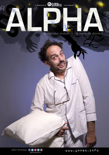 - Lo egitea behar fisiologiko bat da. Eguneroerrepikatzen dugun errutina, gehienetan atsegina. Lo egiten dugunean, guresubkontzienteak atea erdi zabalik uzten du, bidea libre utziz amets ilunei,ahaztutako oroitzapenei edota nahi gabeko fantasiei.ALPHAk kontzientziatik ametsen munduraigarotzeko une hori isladatzen du. Bere fantasien biktima den pertsonai baten bizipenkomikoak kontatzen dizkigu, beldur eta sentimendu unibertsalei buruz barre egitekoaukera eskainiz.Komikotasuna, bideo proiekzioak eta zuzenekomusika izango ditugu, ikusle guztientzako testurik gabeko ikuskizun honetan.