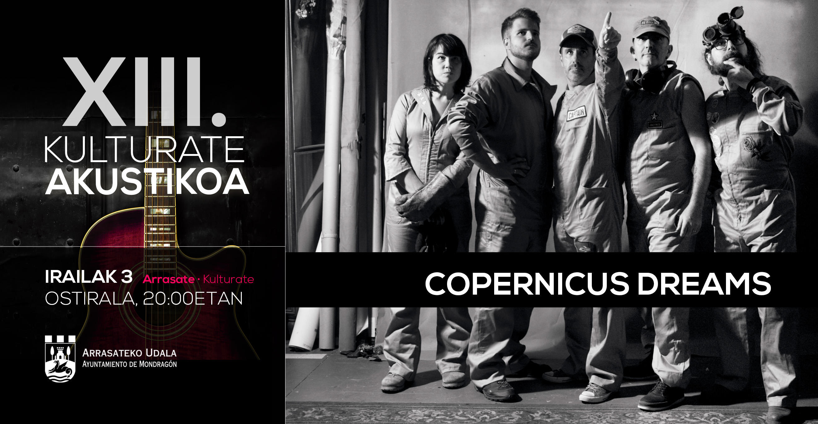 • Copernicus Dreams nace en 2012 dela mano de Chus González (Gramophone Man). El proyecto presenta canciones que surgende experiencias personales, con influencias del folk rock americano. Su primerdisco, 'Sunrise', ve la luz en 2015 y es en 2017 cuando la banda publica 'TheHoneymoon', su segundo LP, bajo una estructura más curtida. Muchas texturas ycolores diferentes especialmente pensados, siendo la grabación un proceso muymeticuloso y un trabajo avalado muy positivamente por los críticos musicales.El 6 de marzo de este año salió a la luz su esperado tercer LP, “Goals &Illusions”, grabado durante el verano de 2020, de nuevo en Gaua Estudio y cuyosingle y adelanto ya está recibiendo muy buenas críticas y sensaciones.   Infogehiago eta abestiak: www.facebook.com/copernicusdreams