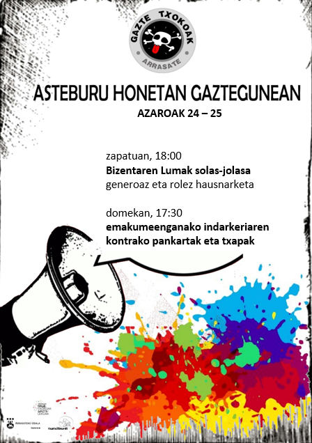 Zapatuan, azaroaren 24an, 18:00 Bizentaren Luma solas-jolasa, generoaz eta rolez hausnarketa.