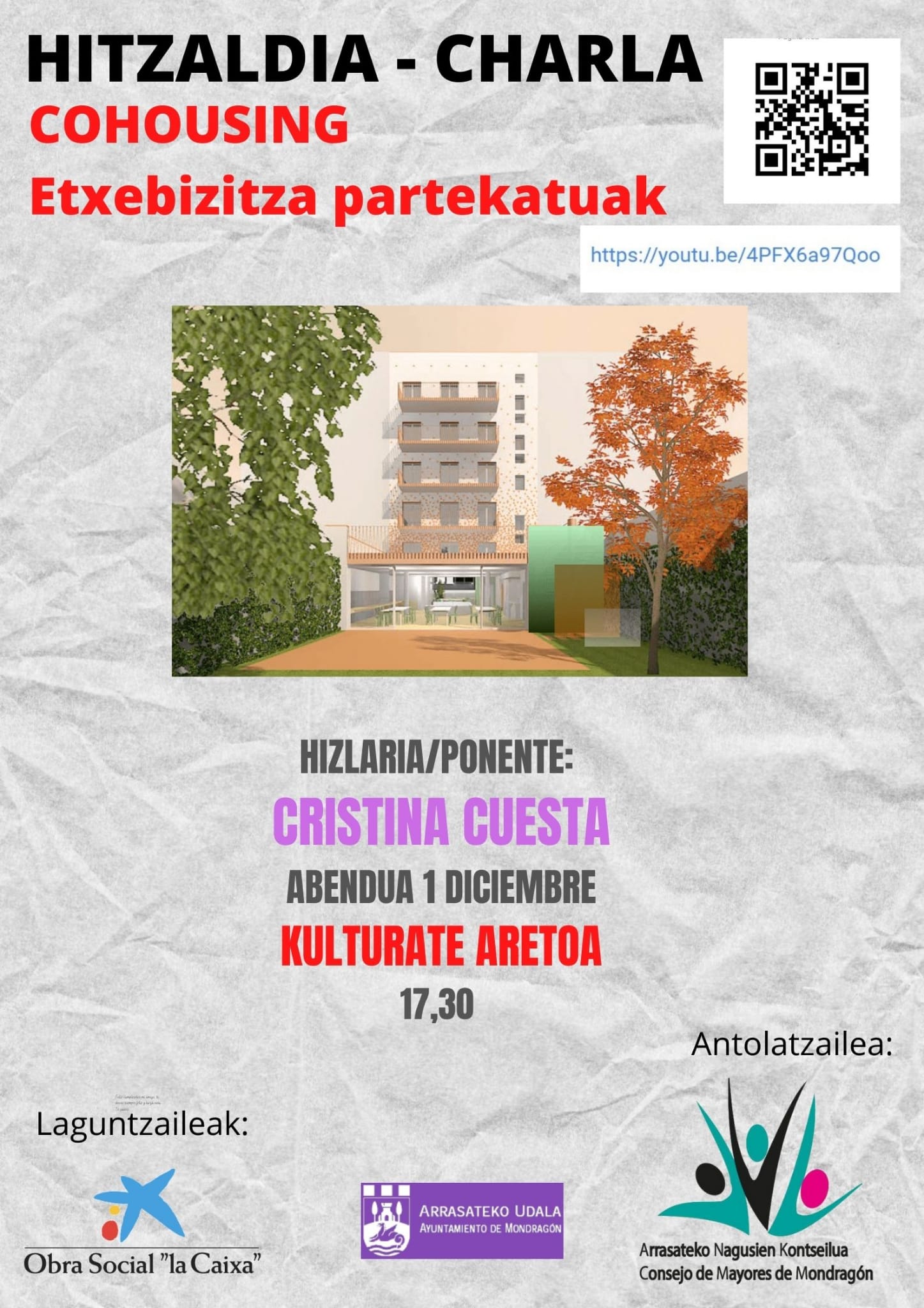 - Cohousing - Etxebizitza partekatuei buruzko hitzaldia, Kulturateko areto nagusian, 17:30etan